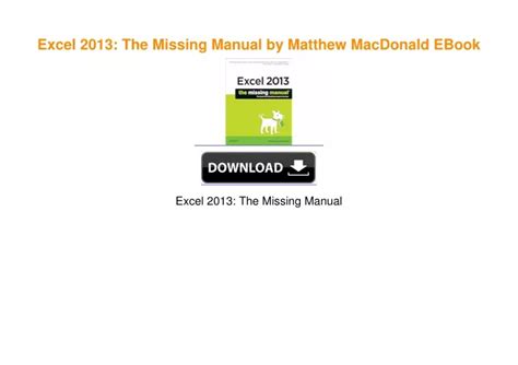 Read excel 2013 the missing manual matthew macdonald Nook ManyBooks